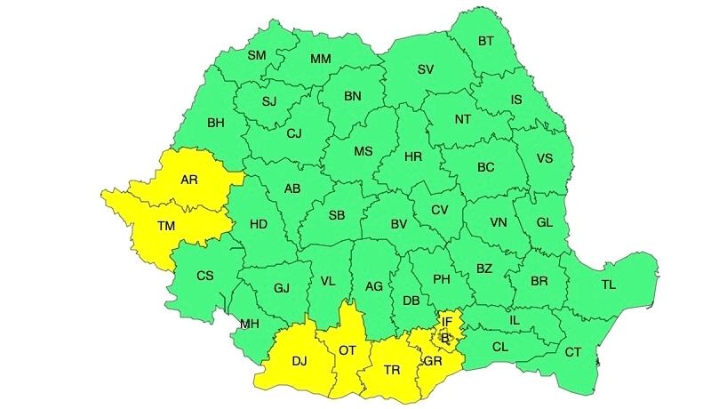 ANM: ATENȚIONĂRI COD GALBEN DE INSTABILITATE TERMICĂ ACCENTUATĂ