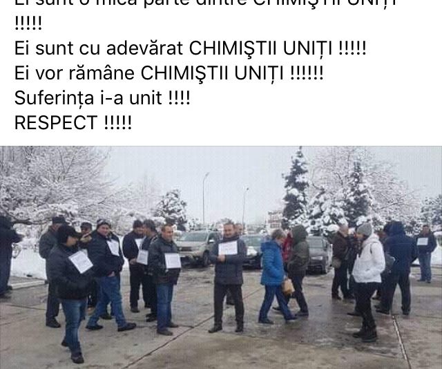 Salariatii Oltchim invoca pe pagina de facebook denumita CHIMISTII UNITI si lipsa investiţiilor în domeniul Sănătăţii şi Securităţii în Muncă, îndoieli cu privire la seriozitatea cumpărătorului activelor companiei, faptul ca Oltchim a fost vadut pe bucăţi si presiuni asupra angajatilorLa aceasta ora au loc discutii cu administratorii speciali si judiciariSalariatii Oltchim au intrat in geva foamei miercuri