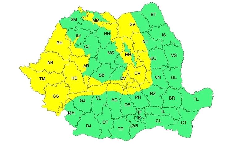Administrația Națională de Meteorologie a emis o atenționare de cod galben de vreme rea, valabilă în perioada 14 martie, ora 10 - 17 martie, ora 18. Potrivit prognozei, în cea mai mare parte a țării se vor înregistra fenomene meteorologice severe, inclusiv instabilitate atmosferică, cantități mari de apă, intensificări ale vântului și precipitații mixte (ploaie, ninsoare și lapoviță).