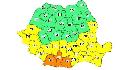 În județele Dolj, Olt și Teleorman se vor înregistra temperaturi maxime de 38...39 de grade, disconfortul termic va fi accentuat, iar indicele temperatură-umezeală (ITU) va depăși pragul critic de 80 de unități. Temperaturile minime se vor situa în general peste 20...22 de grade.