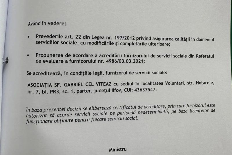 Raluca Turcan ar fi semnat avizul de funcționare al azilului „Sf. Gabriel cel viteaz”. În documentele intrate în posesia Realitatea PLUS apare semnătura Ralucăi Turcan, pe vremea când era ministru al Muncii.
