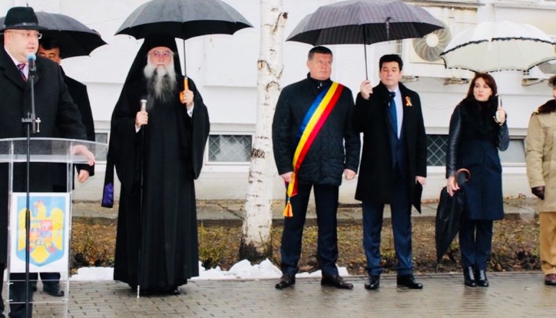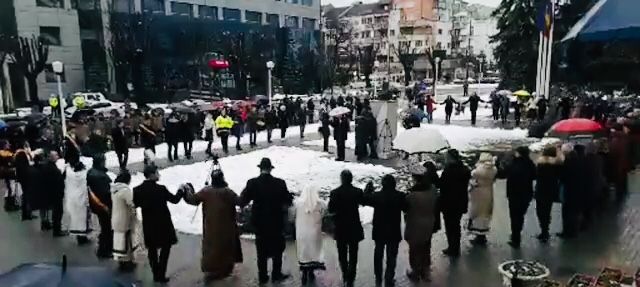 Hora Unirii în ploaie în această dimineață pe platoul din fața prefecturii Vâlcea, discursuri, sunet de clopote și o prezență unică: domnitorul Alexandru Ioan Cuza.