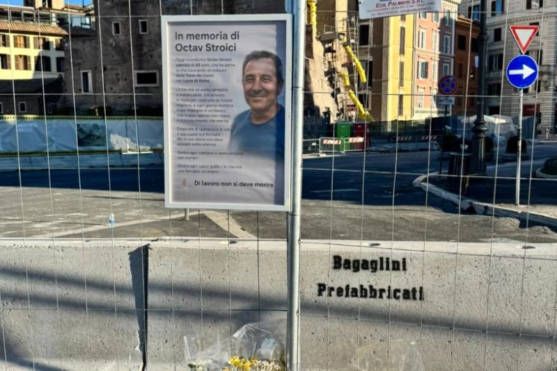 Gest impresionant în memoria lui Octav Stroici, muncitorului român care a murit la Roma, după prăbușirea unui turn monument istoric aflat în renovare. Luni, la locul tragediei a fost instalat un mic panou comemorativ, în care este omagiată jertfa muncitorului.