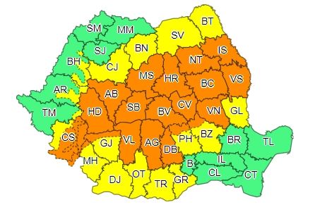 "În funcţie de evoluţia şi intensitatea fenomenelor meteorologice, Administraţia Naţională de Meteorologie va actualiza prezentul mesaj", anunță meteorologii.