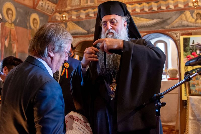 Scriitorul Dinu Săraru și Arhiepiscopul Râmnicului, prezenți la Biserica Maicii Domnului Vioreşti din Slătioara