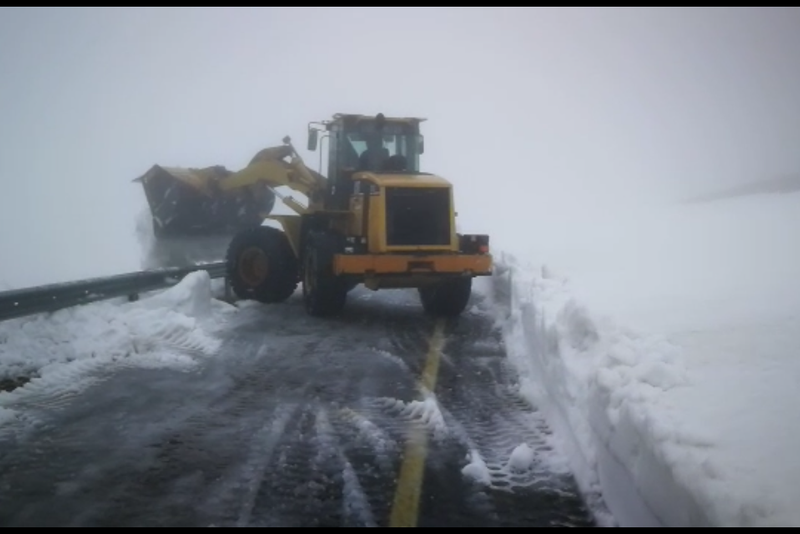 Intervenţie dificilă a echipajelor CNAIR pentru a îndepărta zăpada de pe Transalpina.