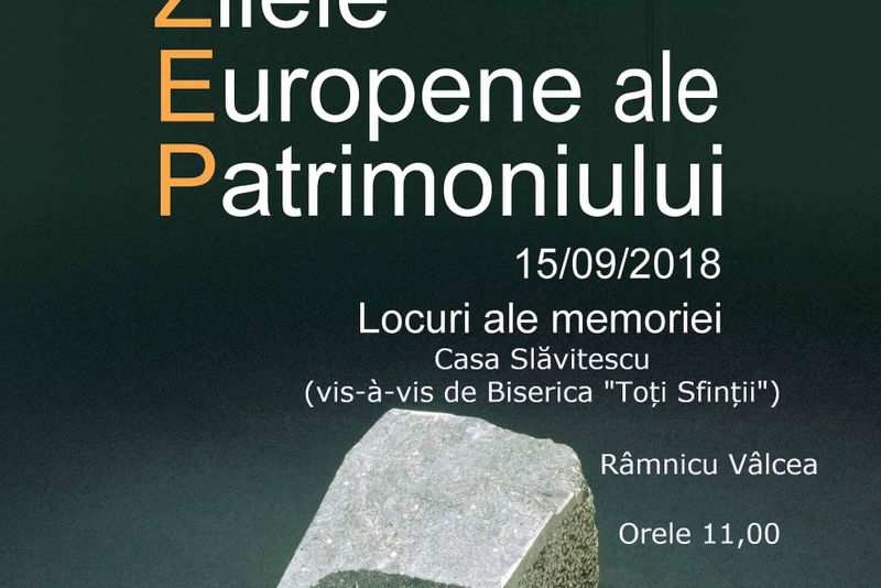 Colocviul ,,Locuri ale memoriei” şi vernisajul expoziţiei: ,,S.O.S. Culele din România”, sâmbătă, 15 septembrie 2018, incepand cu ora 11 00 la ,,Casa Slavitescu” in Ramnicu Valcea, cu prilejul Zilelor Europene ale Patrimoniului.