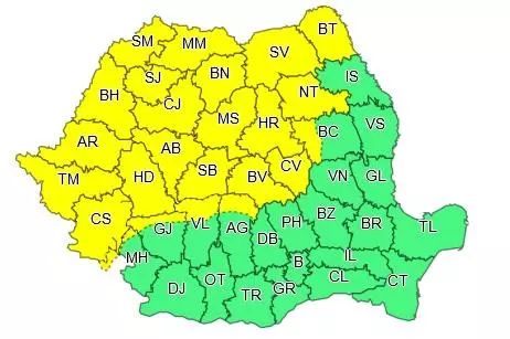 ATENȚIONARE METEOROLOGICĂ - COD GALBEN