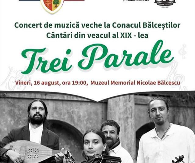 "Concert de muzică veche la Conacul Bălceștilor, Cântări din veacul al XIX-lea”, vineri, 16 August.