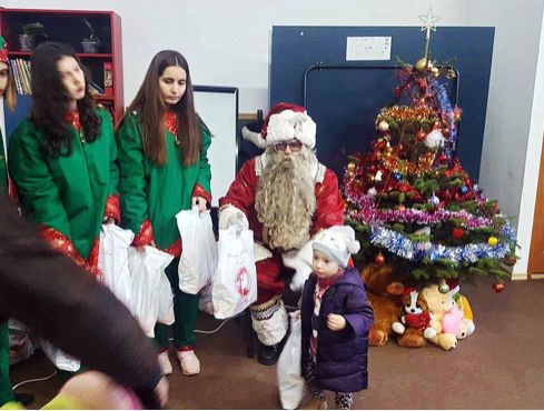 După grădina zoologică și centrul Râmnicului sania lui Moş Crăciun s- a oprit la copiii din Petrişor