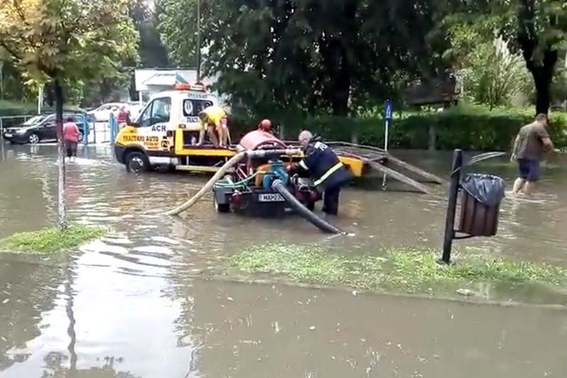 Ploaie torenţială în Râmnicu Vâlcea, vânt puternic, în urmă cu puțin timp. Traficul rutier a fost închis pe o stradă în urma vizibilității reduse sub 2 metri.