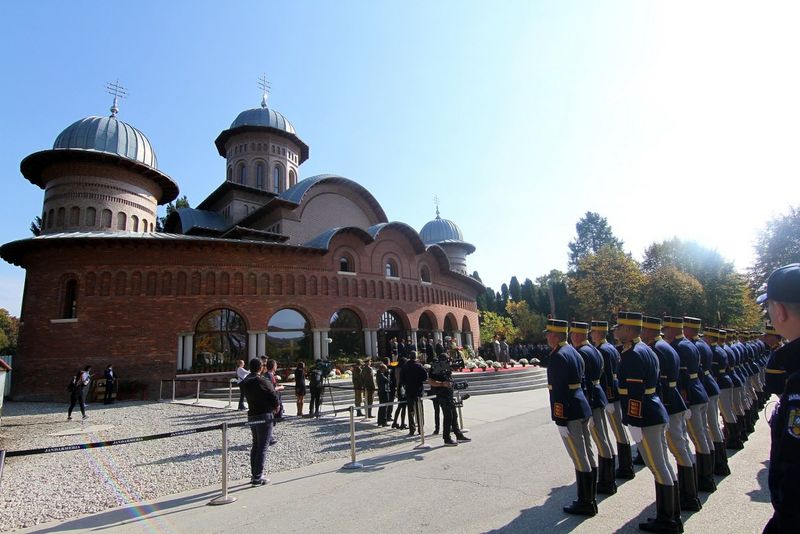 La slujbă au asistat Majestatea Sa Margareta, Custodele Coroanei, Principele Radu, Principesa Sofia, Principesa Maria alături de Ducele Amedeo de Aosta, Principesa Mafalda, fiica Ducelui De Aosta, şi Lord Peter Rosslyn, şeful Casei Principelui de Wales şi Ducesei de Cornwall.Regina Mamă Elena a fost adusă sâmbătă în Noua Catedrală Arhiepiscopală de la Curtea de Argeş, la 71 de ani de la plecarea în exil.
