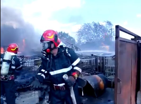 Incendiu de proporții la un depozit din Râmnicu Vâlcea