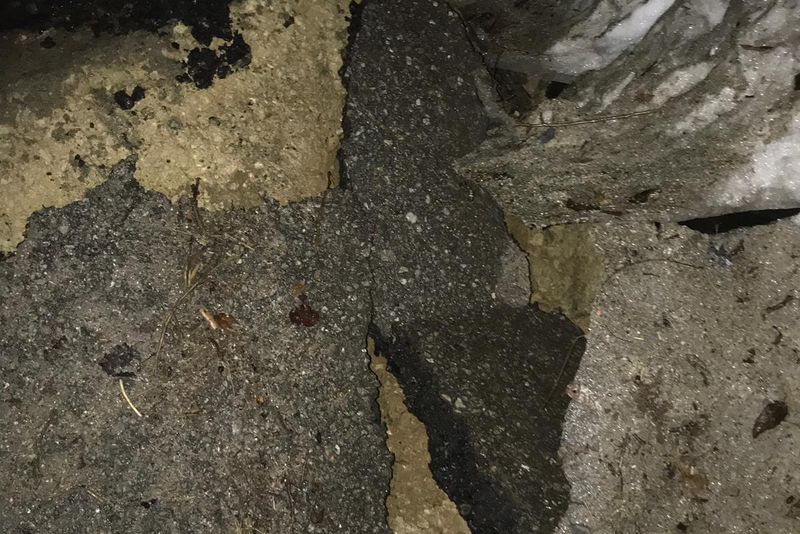 Datorită infiltrărilor de apă s-a produs o alunecare de teren care a dus la prăbușirea platformei drumului comunal ce face legătura între comunele Slătioara și Vaideeni, pe o lungime de aproximativ 50 m (drum asfaltat cu o lățime a căii de rulare de aproximativ 4m).