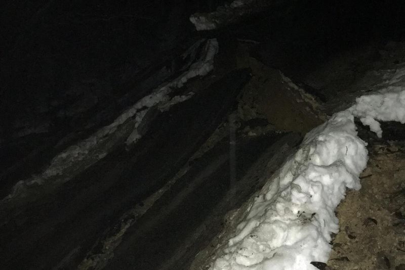 Platforma drumului comunal de pe raza comunei vâlcene Slătioara s-a rupt din cauza precipitațiilor abundente în zona "Coasta Corbului" , eveniment semnalat la ora 04.45 prin SNAU "112".