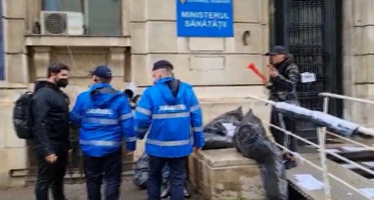 Jandarmii au rămas în fața Ministerului Sănătății penrtu a preveni repetarea unor astfel de evnimente. Protestatarele nu s-au oprit însă aici. Din contră, acestea i-au blocat mașina Andreei Moldovan.