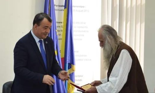 Vâlceanul, ale cărui opinci și asemănare cu Brâncuși, au cucerit România, a primit astăzi din partea prefectului Florian Marin o plachetă de excelenţă.