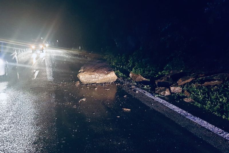 Căderile de pietre au avut loc la Km. 199, Calimănesti. Sensul Sibiu-Râmnicu Vâlcea a fost blocat.