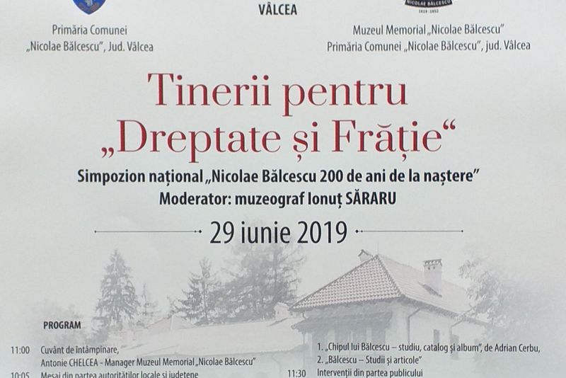 În perioada 28-30 iunie 2019, Muzeul Memorial „Nicolae Bălcescu”, cu sprijinul Consiliului Județean Vâlcea, în parteneriat cu Primăria Nicolae Bălcescu și Academia Forțelor Terestre „Nicolae Bălcescu” din Sibiu, organizează la sediul instituției din localitatea Nicolae Bălcescu, sat Valea Bălcească, o serie de acțiuni culturale dedicate împlinirii a 200 de ani de lanașterea marelui patriot, istoric și revoluționar Nicolae Bălcescu.